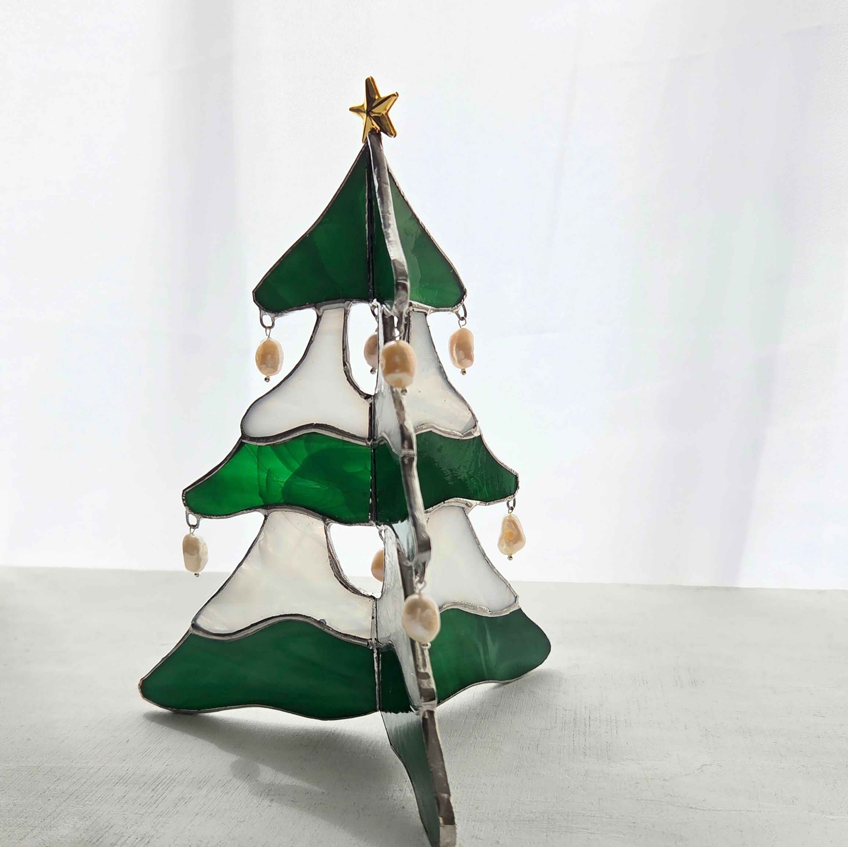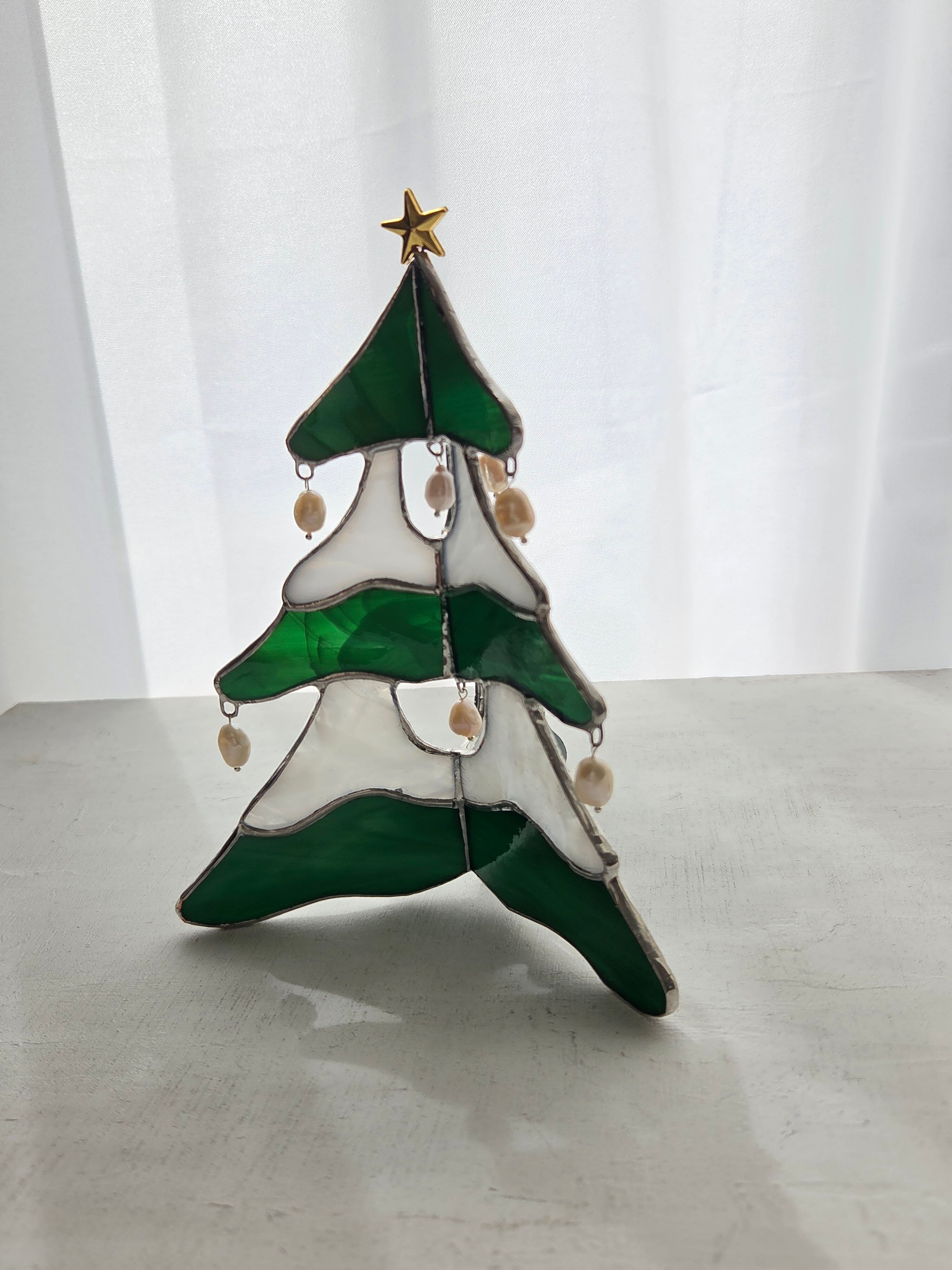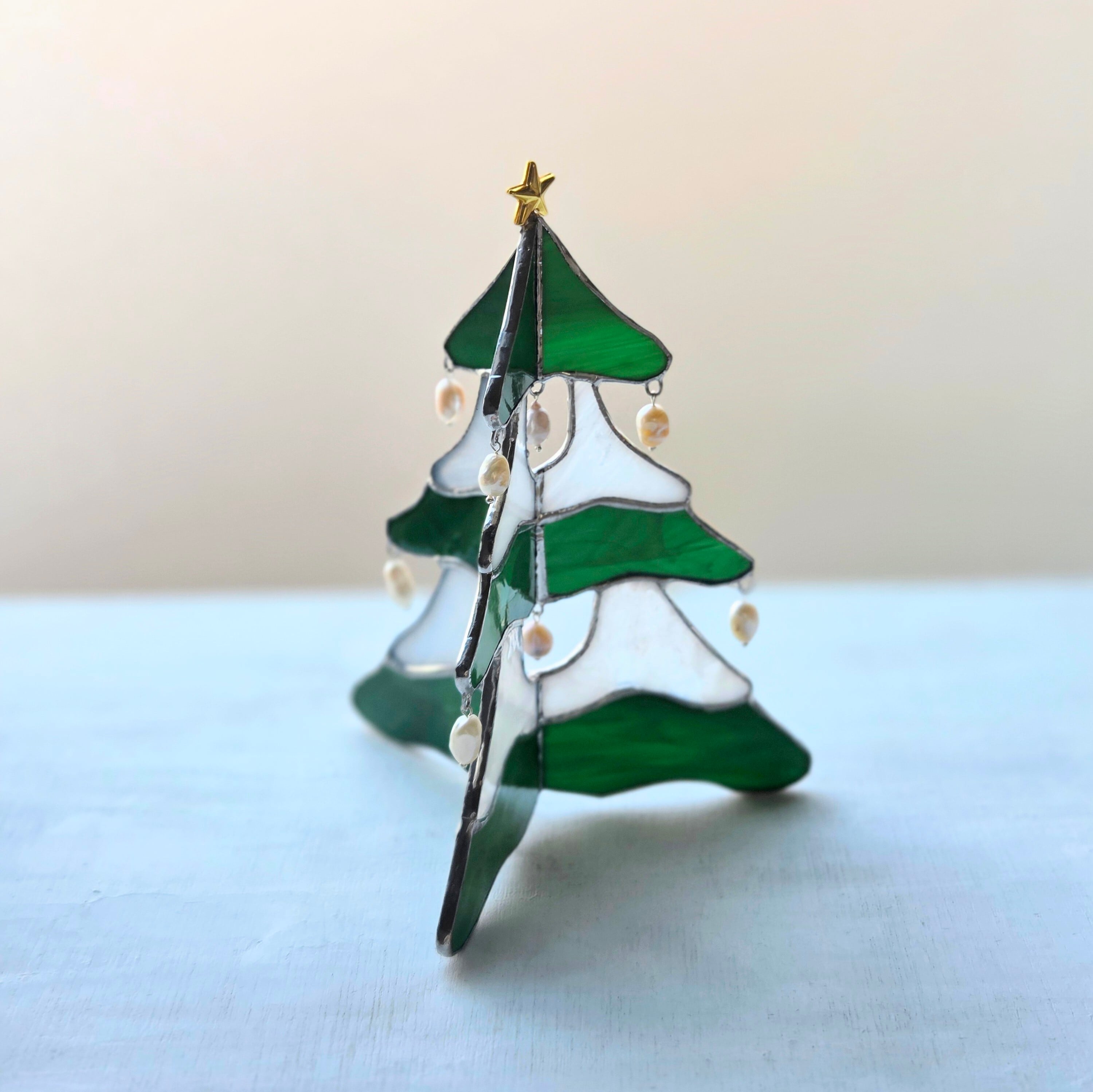 美しい輸入色ガラスと淡水バロックパールのクリスマスツリー。